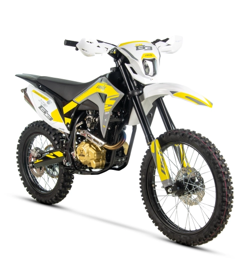 ASIX XB-83 to idealny wybór dla miłośników off-roadu, którzy szukają niezawodnego motocykla z mocnym silnikiem i doskonałymi parametrami technicznymi. Wyposażony w czterosuwowy silnik o pojemności 250 cm³ oraz manualną, 5-biegową skrzynię biegów, gwarantuje dynamiczną jazdę zarówno na trasach terenowych, jak i wymagających szlakach. Chłodzony powietrzem silnik został zaprojektowany z myślą o trwałości i wydajności, co czyni go świetnym towarzyszem długich wypraw. Podwójny system rozruchu – elektryczny oraz kick-start – zapewnia wygodę użytkowania w każdej sytuacji. Dzięki kołom o rozmiarze 21″ z przodu i 18″ z tyłu, ASIX XB-83 gwarantuje pewne prowadzenie w trudnym terenie, a hydrauliczne tarczowe hamulce na obu osiach odpowiadają za bezpieczeństwo i skuteczne hamowanie. Przednia lampa pozwala na jazdę nawet po zmroku, zwiększając komfort i bezpieczeństwo użytkowania.