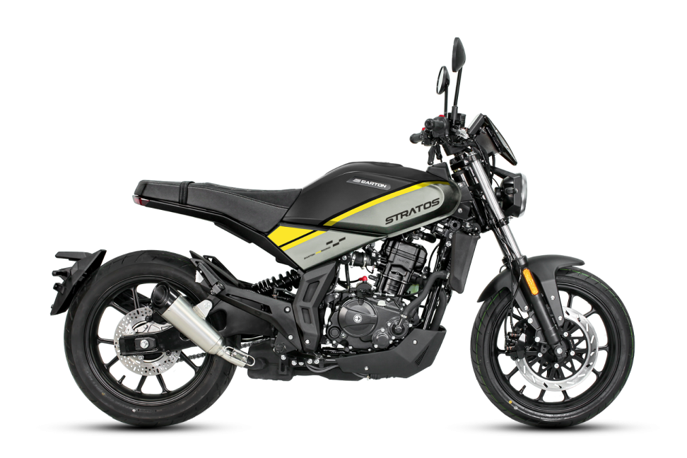 Stratos 125 jest propozycją skierowaną do wymagającego nabywcy, szukającego w pojeździe wyjątkowego połączenia klasyki z nowoczesnością. To odpowiedź projektantów na potrzeby nowego pokolenia motocyklistów poszukujących połączenia tradycyjnej formy ze współczesnymi rozwiązaniami. Eleganckie elementy nadwozia doskonale łączą się z wytrzymałą konstrukcją pojazdu, najnowszymi rozwiązaniami i zaawansowaną technologią, którą znajdziemy na pokładzie motocykla. Nowoczesny i sprawdzony silnik firmy Zongshen, smakowite detale, pełne oświetlenie LED z pływającymi kierunkowskazami czy 5-calowy, nowoczesny wyświetlacz LCD z Bluetooth w dwóch wariantach podświetlania matrycy to rozwiązania stosowane do tej pory jedynie w klasie motocykli premium. Na zaawansowanym panelu wskaźników, poza podstawowymi parametrami pojazdu, odczytamy także dane specjalne jak osiągniętą prędkość maksymalną podróży czy przyspieszenie od 0 do 60 km/h. Jednostka, która napędza tego nietuzinkowego scramblera to nowoczesny, jednocylindrowy, czterosuwowy, zasilany wtryskiem i chłodzony cieczą silnik o pojemności 124,2 cm3 , generujący maksymalną moc 14,3 KM przy 9000 obr./min. Umożliwia on osiągniecie prędkości maksymalnej na poziomie 110 km/h. Co do reszty wyposażenia Stratosa, znajdziemy tu wydajne i komfortowe zawieszenie oparte na klasycznym przednim widelcu i świetnie wkomponowanym pod tylną kanapą amortyzatorze centralnym. Hamulce z dużą przednią tarczą o średnicy 330 mm i układem CBS, 17-calowe koła oraz ogumienie firmy CST gwarantują stabilne, pewne i bezpieczne prowadzenie się na każdej drodze oraz możliwość szybkiego wyhamowania maszyny w razie pojawienia się nieprzewidzianej sytuacji. Wygodna i szeroka kanapa, położona na wysokości 810 mm, sprawia, że w segmencie 125 jest to bardzo ciekawa propozycja także dla wyższych kierowców.